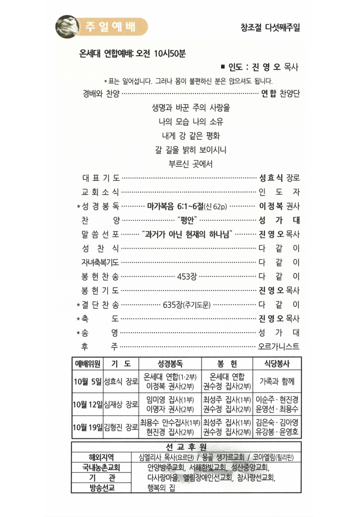 주보(예배순서)