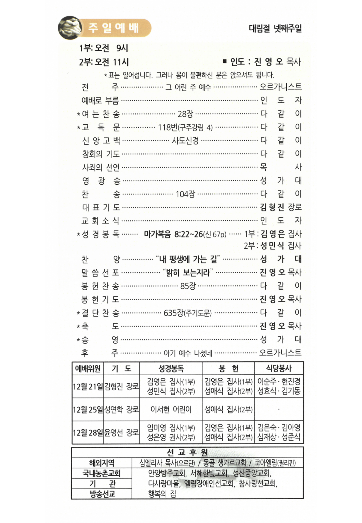 주보(예배순서)