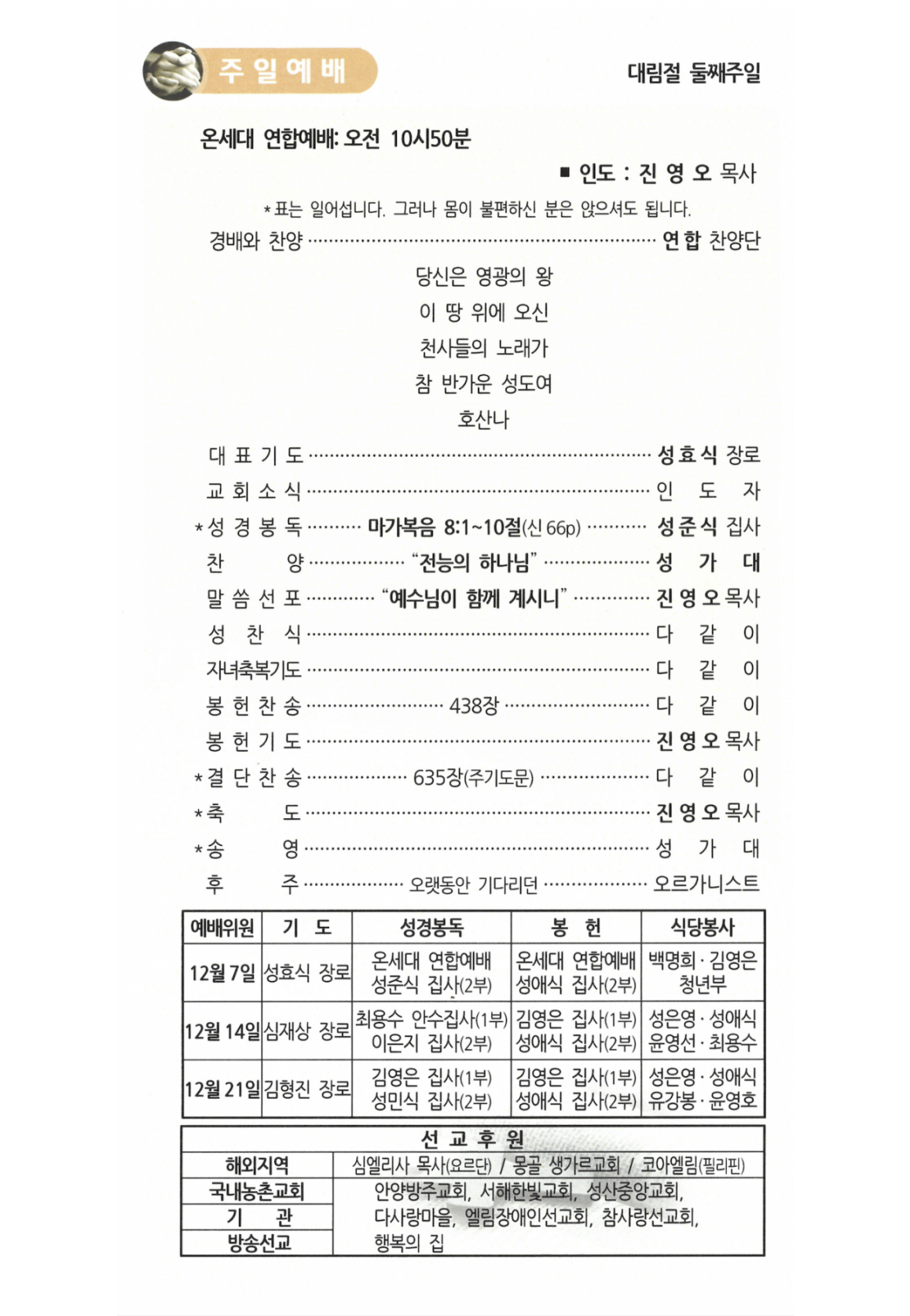 주보(예배순서)