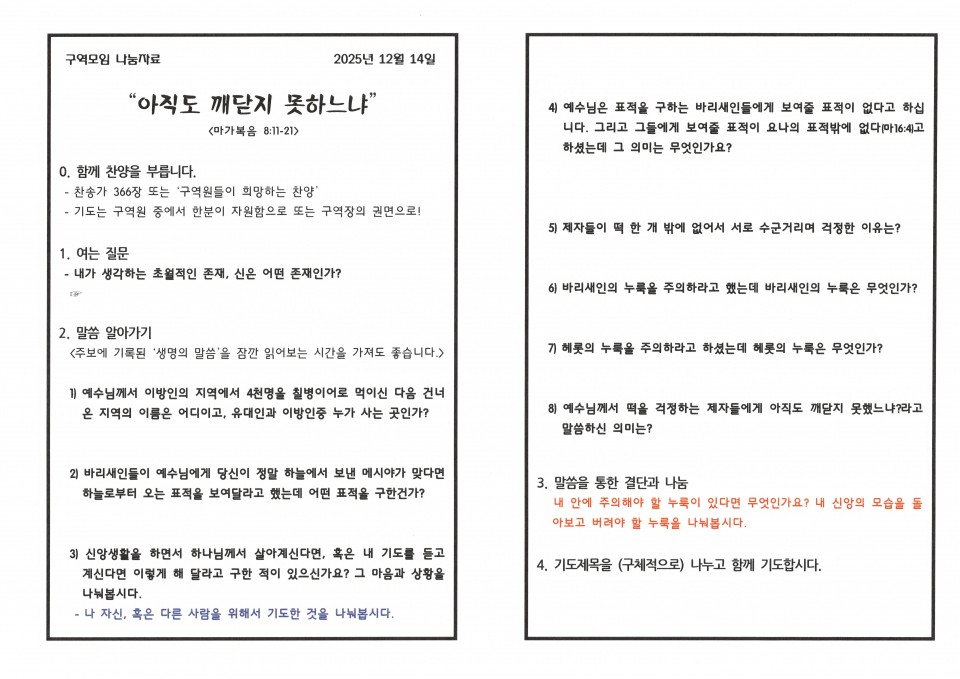 [구역예배] 구역모임 나눔지 본문 구역모임 나눔지구역모임 나눔지 구역모임 나눔지 구름산 조회 28회 2025-12-13 20:48 가 본문내용 확대/축소 목록 댓글목록 다음글 구역모임 나눔지(25.11.30) 25.11.30