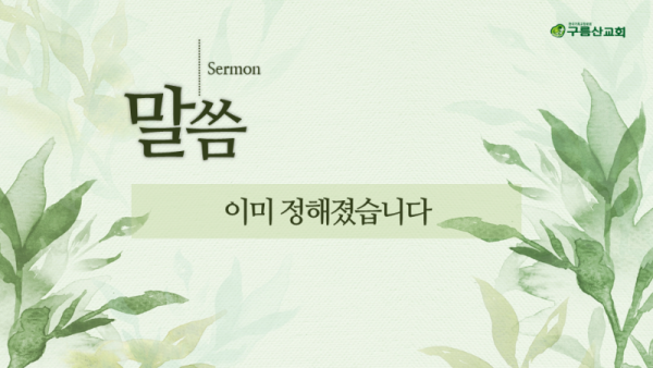 1. 환영합니다. 구름산교회에 오신 여러분을 진심으로 환영합니다. 2. 전체여신도회 총회 오늘 오후 찬양예배후에(2시30분)에 전체 여신도회 총회가 있습니다. 3. 예배안내 오늘 말씀은 성양권목사(인천노회 증경노회장, 부천사랑의교회  …