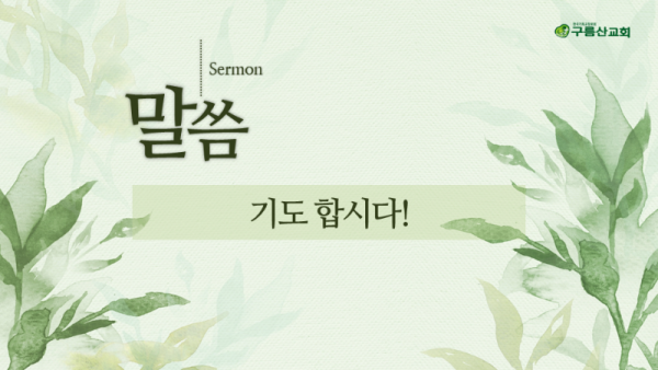 1. 환영합니다. 구름산교회에 오신 여러분을 진심으로 환영합니다. 2. 예배안내 다음 주는 2부에 온 성도가 성례전 예배로 드립니다. 3. 교회로 소풍 오는 날 다음 주는 교회로 소풍 오는 날입니다. 남·여신도회 회원들은 소풍&nbs…