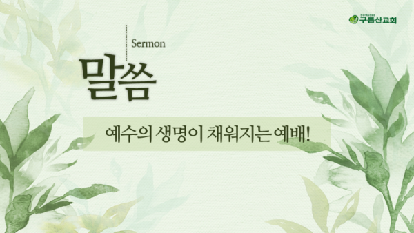 1. 환영합니다. 구름산교회에 오신 여러분을 진심으로 환영합니다. 2. 사순절 사순절 기간입니다. 그리스도의 고난에 참여하는 마음으로 믿음의 결단과 순종의 모습이 세워지길 바랍니다. 3. 예배안내 오늘은 온 성도가 연합예배로 드립니다. 4.&n…