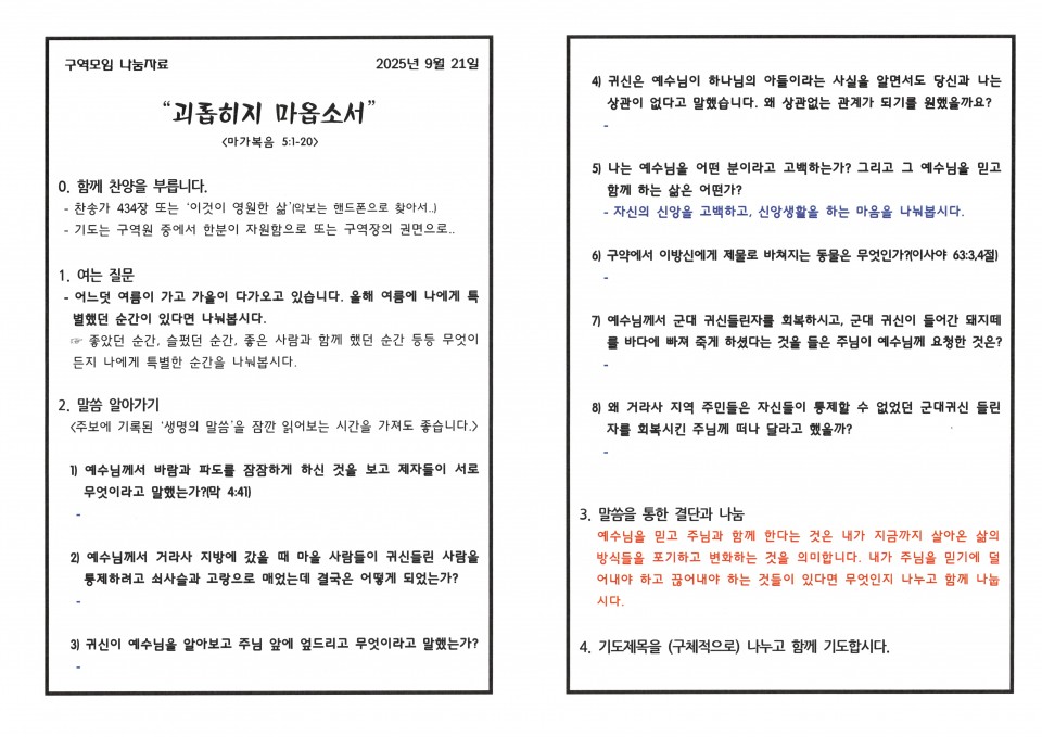 [구역예배] 구역모임 나눔지(25.09.21) 본문 구역모임 나눔지(25.09.21)구역모임 나눔지(25.09.21) 9월 21일 구역나눔지 구름산 조회 193회 2025-09-20 16:44 가 본문내용 확대/축소 목록 댓글목록 이전글 구역모임 나눔지(25.09.28) 25.09.27 다음글 구역모임 나눔지(25.09.14) 25.09.13