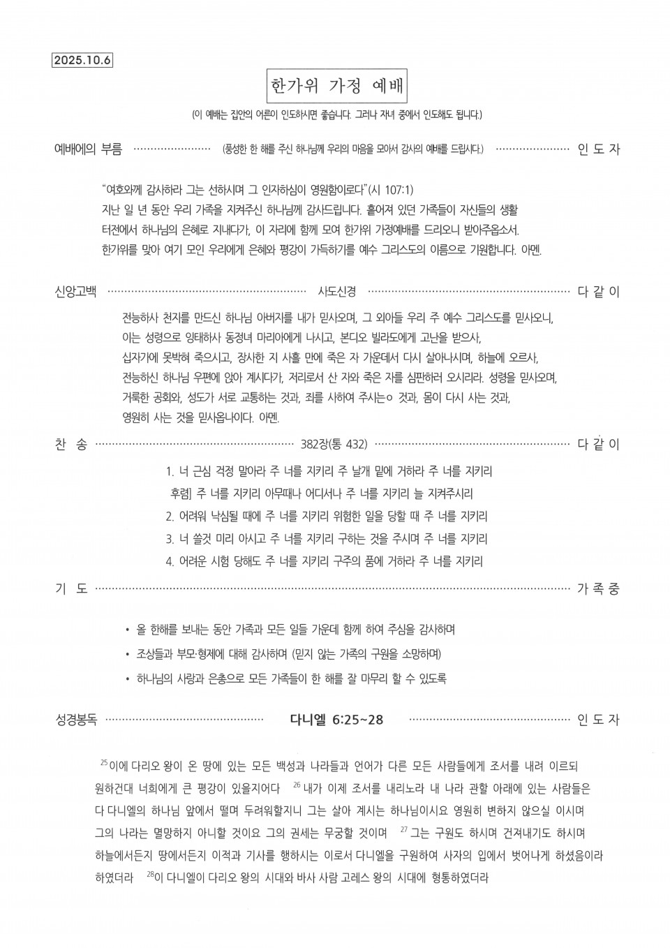 [가정예배] 2025년 추석 가정예배지 본문 2025년 추석 가정예배지2025년 추석 가정예배지 추석 가정 예배지 구름산 조회 181회 2025-09-27 22:16 가 본문내용 확대/축소 목록 댓글목록 이전글 구역모임 나눔지(25.10.12) 25.10.11 다음글 구역모임 나눔지(25.09.28) 25.09.27