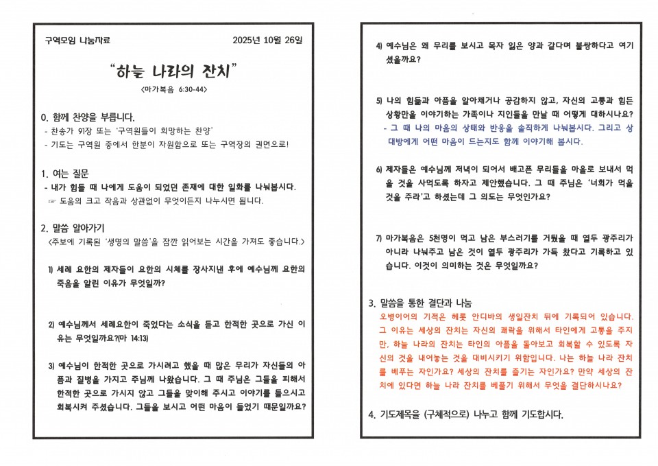 [구역예배] 구역모임 나눔지(25.10.26) 본문 구역모임 나눔지(25.10.26)구역모임 나눔지(25.10.26) 10월 26일 구역모임 나눔지입니다. 구름산 조회 76회 2025-10-25 23:52 가 본문내용 확대/축소 목록 댓글목록 이전글 구역모임 나눔지(25.11.02) 25.11.01 다음글 구역모임 나눔지(25.10.19) 25.10.18